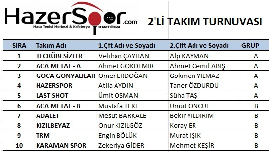 2' li Takım Turnuvası -7/8/Aralık 2019