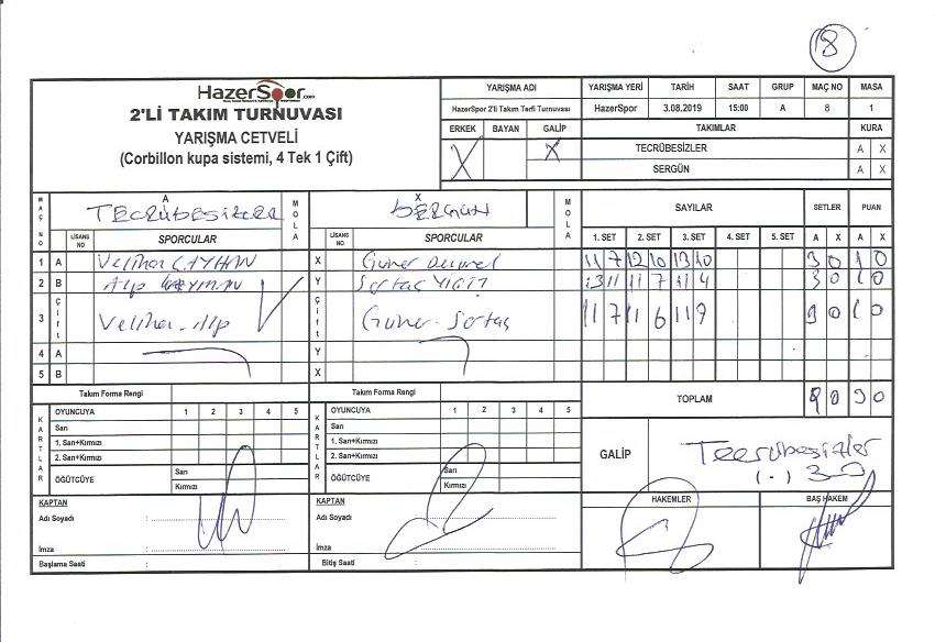 | Alp KAYMAN | Harun AKSOY | 3-0 | |